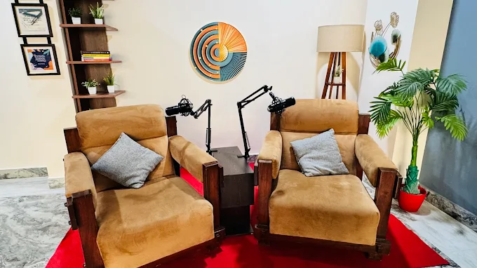 Record high-quality podcasts, YouTube videos, and branded content at our professional podcast studio in Noida. Equipped with premium microphones, mixers, and studio lighting, the studio is ideal for podcasters, content creators, YouTubers, and brand hosts producing engaging audio and video content.